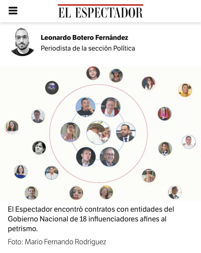 Agradezco a la @CorporacionVLID el haber presentado esta tutela, se me incluyó en la lista de “influenciadores” por mi reivindicación permanente de las obras sociales del gobierno de @petrogustavo y @DanielSamperO nos llamó sicarios digitales. Les comparto el texto que le dirigí a El Espectador: ¿Por qué un diario como @elespectador cuna de las libertades, se presta para este tipo de perfilamientos? “Sicarios morales” reacciona @DanielSamperO para exponer la vida de quienes el diario titula tropa” de 18 influenciadores “pagos” del erario público que defienden las políticas del Gobierno de @petrogustavo, se me ha hecho el honor de incluirme al lado de jóvenes valientes que controvierten la difamación cotidiana de los grandes medios y la perfidia del establecimiento que se opone a las reformas que el pueblo necesita. Que algunos de ellos puedan tener un contrato público no es ilegal, ni es anti ético , sobre todo cuando el uso de las redes sociales ayuda a erosionar el monopolio de la desinformación de aquellos que históricamente se han lucrado de lo público para multiplicar sus capitales privados, de un statu quo que se ha mantenido con crímenes de Estado, de lesa humanidad y graves violaciones de derechos humanos, de los que han hecho de la guerra su negocio, de la política el despojo y la violencia. Toda sociedad y todo gobierno democrático requieren de una prensa independiente y de un periodismo crítico; por haberlo ejercido y advertir de la cooptación del poder público por las mafias, un hombre ejemplar como Guillermo Cano fue sacrificado. En este gobierno no se han cerrado medios de comunicación ni se ha censurado a nadie y las manifestaciones de la oposición han tenido plenas garantías. Sin embargo cuando el gobierno se defiende de los ataques infames se le llama tirano, cuando llama al soberano para ejercer un mecanismo legítimo y constitucional de participación ciudadana se le tilda de dictador. Se cometen errores como en cualquier obra humana y los errores deben ser enmendados, pero aquí no se concilia con el crimen, ni se justifica la barbarie, ni se sacrifica la justicia. Aquí avanzamos pese a todas las dificultades hasta que la dignidad se haga costumbre.