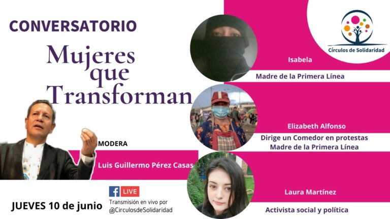 Isabela, madre de un integrante de la Primera Línea; Elizabeth Alfonso, mujer que dirige un comedor de beneficencia en el Portal de la Resistencia y es madre de dos jóvenes de la Primera Línea; Laura Martínez, activista social y política