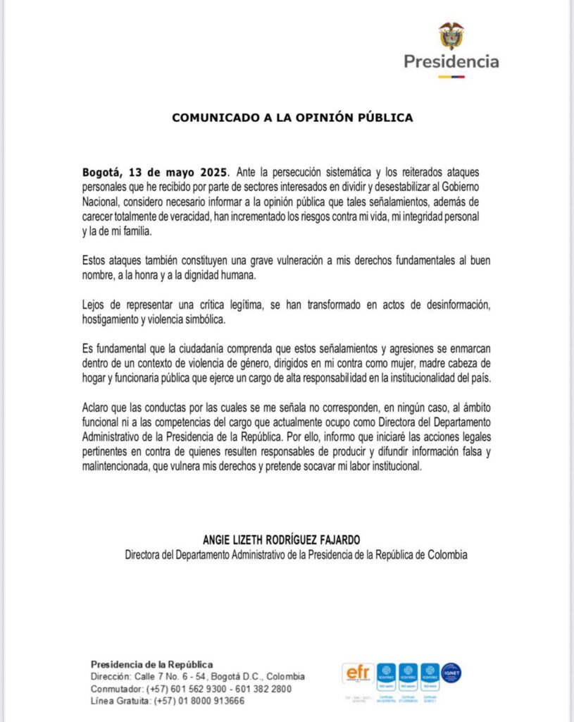 Nuestra solidaridad con Angie Lizeth Rodríguez quien con profesionalismo, dignidad, amor por el país y por nuestro pueblo…