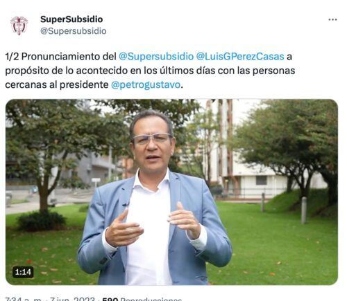 El superintendente de subsidio familiar, Luis Guillermo Pérez, le envió un mensaje a los colombianos donde hace un claro recuento y análisis sobre los logros del gobierno actual y donde hace un llamado de apoyo a la institucionalidad tras el escándalo de dos de los principales funcionarios del gobierno que ya fueron destituidos y pide rechazar el intento de golpe blando que se viene orquestando desde la oposiciones y los medios privados al servicios de está.